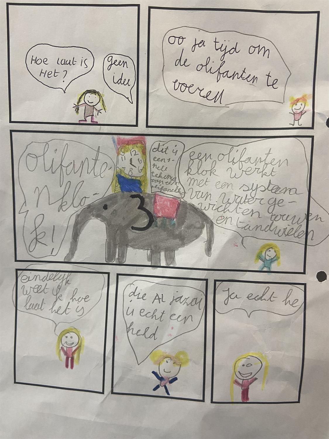 Benieuwd wat een olifantenklok is? Bekijk de zelfgemaakte strip......